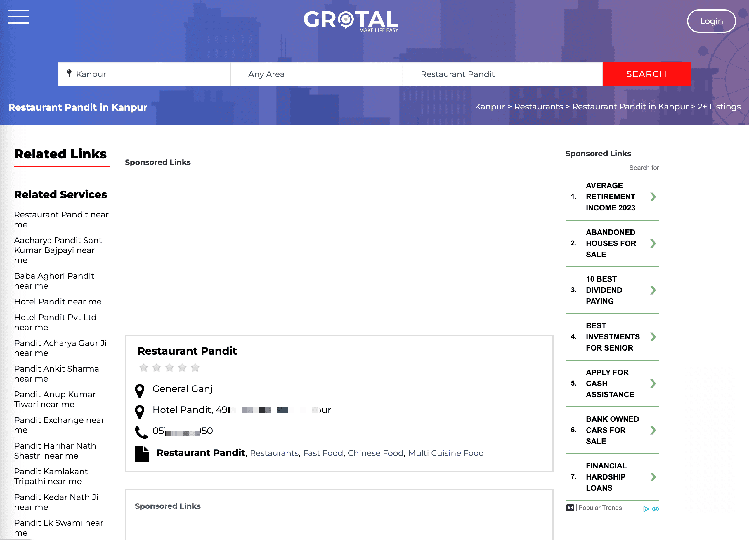 - 비즈니스 검색 결과 또는 비즈니스 세부 정보 페이지로 이동: 스크래핑하려는 Grotal 페이지로 이동합니다.